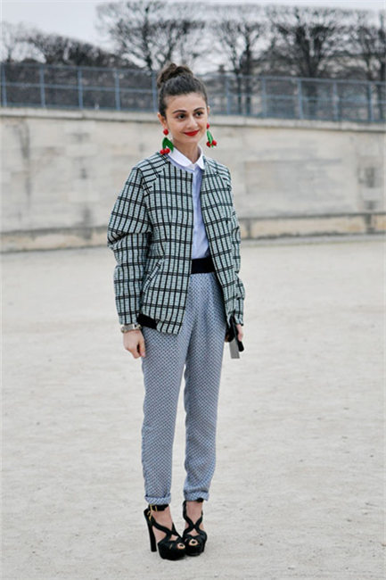 有时候看到oversize矮个子的女生都会觉得是噩梦吧,害怕把衣服把自己给埋了,其实你可以像NataliaAlaverdian一样在内里打造高腰线,整体色调统一更具高级感,(注意:耳环是唯一至高亮点哦~所以夸张造型的耳环你知道怎么用了吗?)