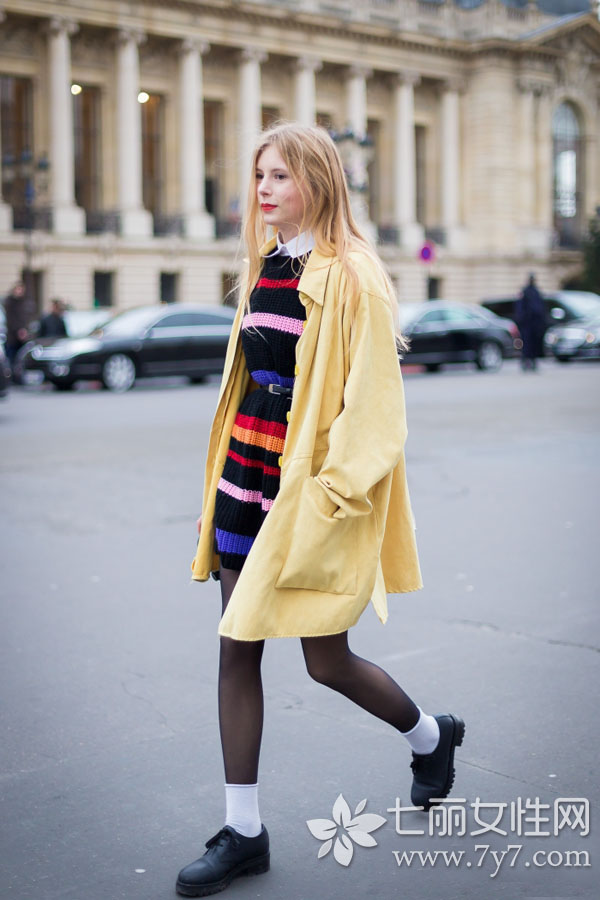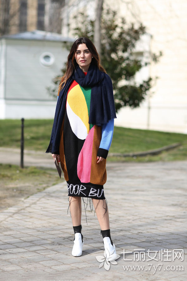 条纹拼色相对于前一种拼色方式更较女生欢迎。各色条纹的合理排布,时髦抢眼,透射出淡淡的异族风情,绝对是冬季街头的一抹亮点。对于较厚的毛衣裙,由于穿着上的空隙感,往往也可以通过一根腰带来达到显瘦显高的效果哦!