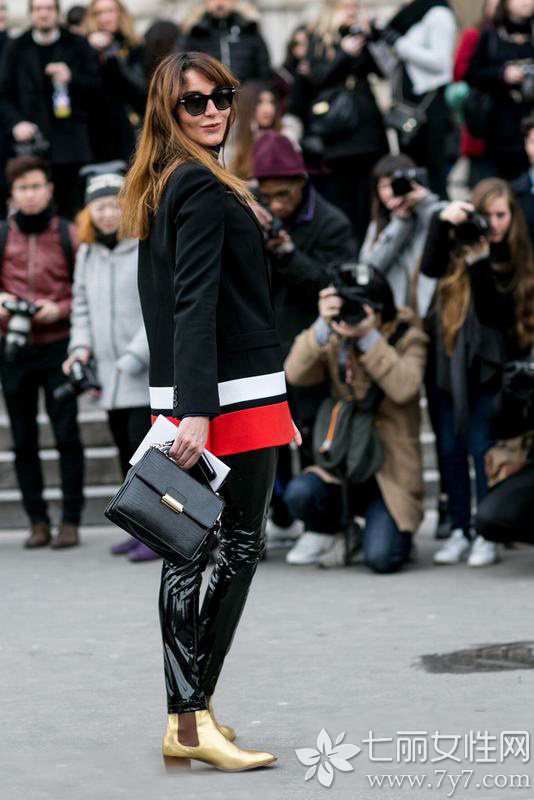 短靴配皮衣,相较长靴少了几分柔美,多了几分大方气质。