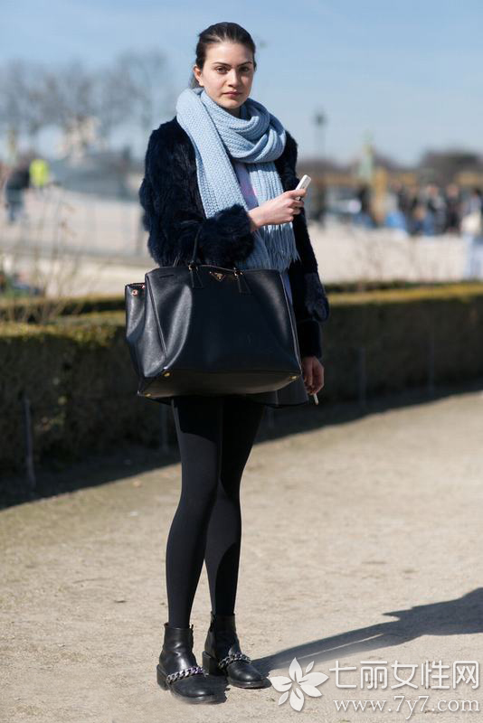 由于短靴的个性化,搭配黑色丝袜,会比长靴更显腿部纤细,与皮草大衣的搭配也会更显整洁自然哦!