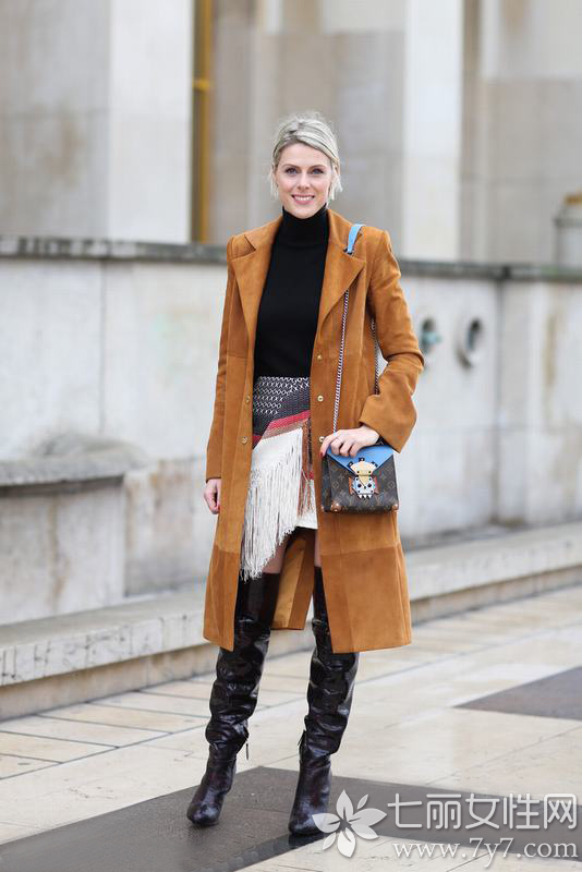 麂皮大衣是今年时装周所热宠的单品,它散发出的浓郁独特复古气息,充满着时尚感染力,突显出女人别样的气质。而搭配皮长靴,修饰腿部显得高挑出众,十足魅力风情。