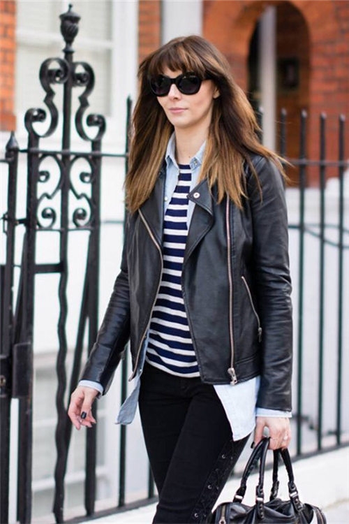 皮衣夹克酷帅有型,牛仔衬衫搭配机车外套将不羁感放大,痞帅痞帅的。