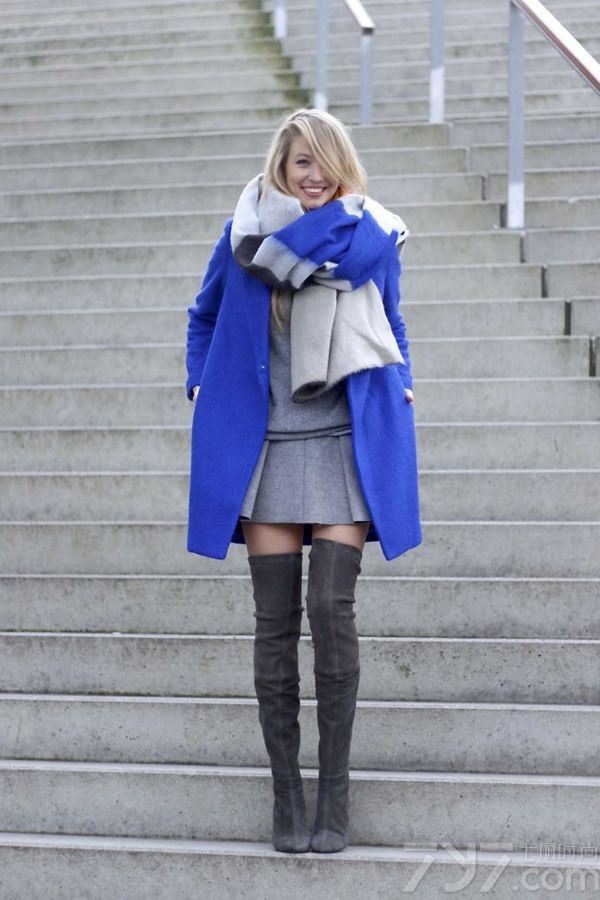 穿上蓝色大衣后是不是瞬间感觉空气都清新了起来呢,更不用说自己的气质了,建议搭配一些深色系的单品把握平衡。