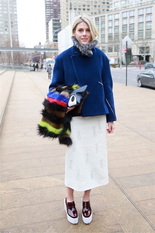 白色伞裙在寒冷的冬季穿着摇曳的身姿带来有一种优雅浪漫感。白色伞裙也易于搭配,尤其与冰淇淋色进行混搭,能穿出嫩嫩的感觉呢。