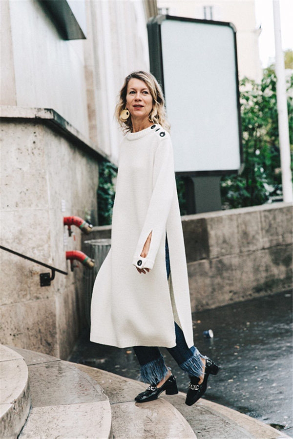 今冬侧身开叉设计也延伸到针织连衣裙上了,休闲文艺范儿。
