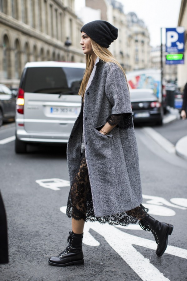 即使在寒冬中也要露出最爱的蕾丝边,大衣一包还会怕寒冷吗。