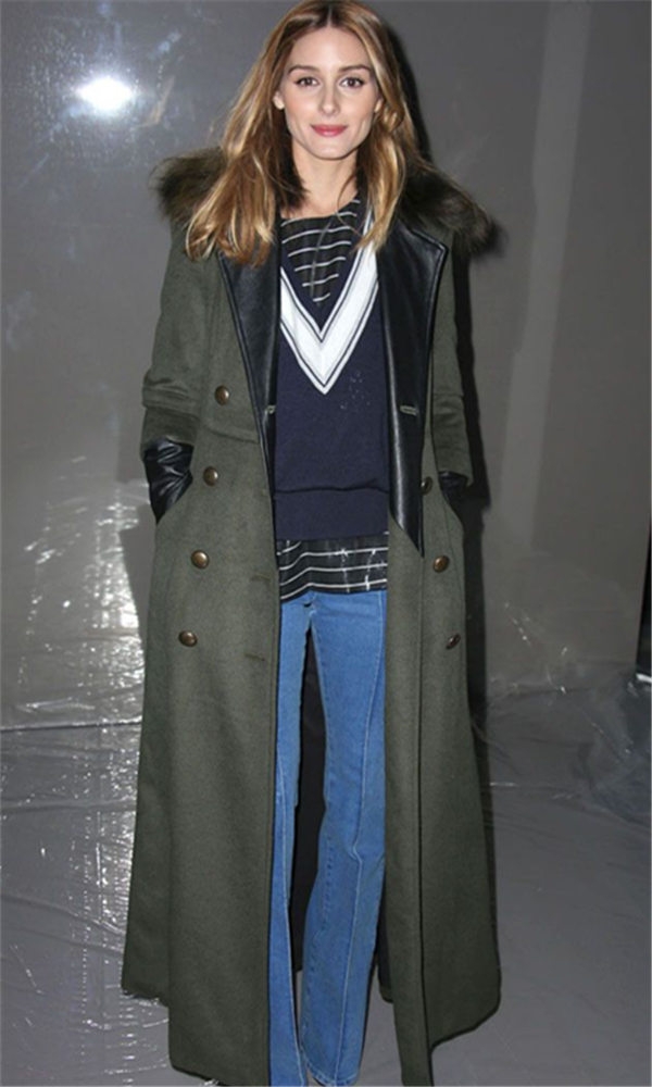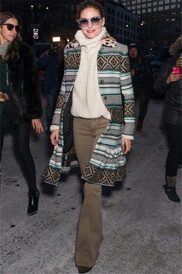 如果你今年置入一件非常火的高领毛衣,可以像Olivia Palermo一样做内搭,注意的是大衣的剪裁要简洁。能提亮你肤色的上衣做内搭比较好。