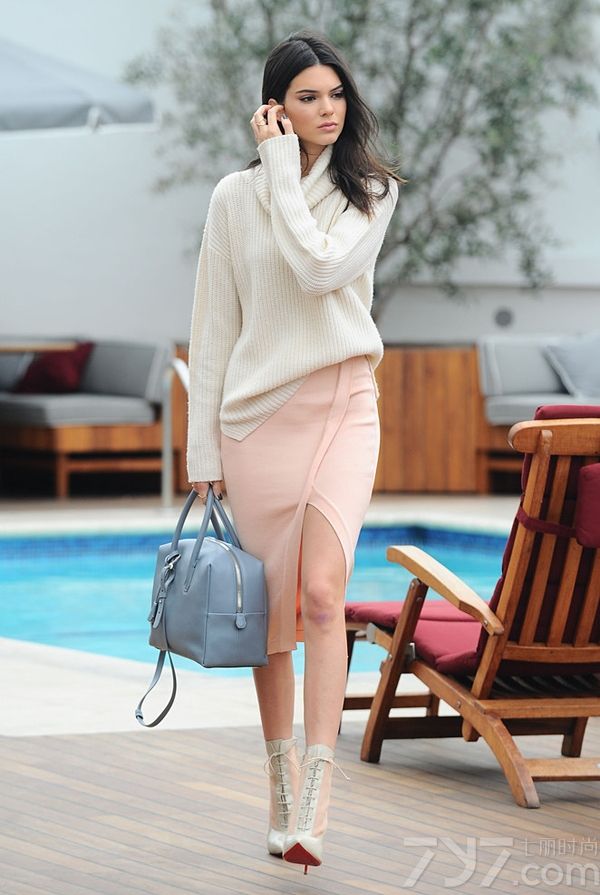 高阶性感,女孩到女人的标志,铅笔裙的包臀设计会使线条突出特别凸显女人味,和高领衫的搭配不仅不会减少这个特质反而会加入一些优雅,我将此称之为高阶性感。