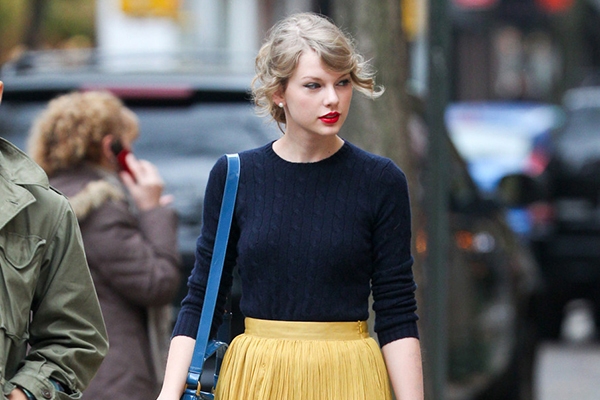 何穗最新街拍,灰色毛衣+墨绿色光泽感半裙,文艺慵懒,少女感十足。马海毛毛衣来自H&M,手提包和粉色毛拖鞋均来自Gucci,半裙来自Tibi 2016