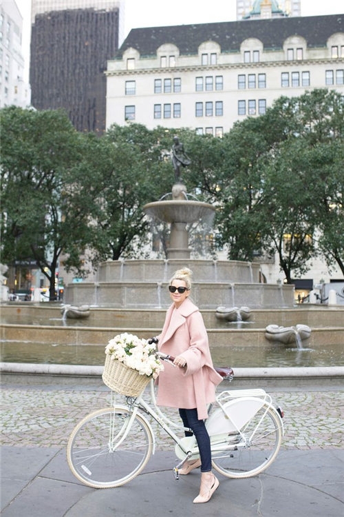 天气好的日子把自行车的装满rose 花朵(白色或香槟色最佳,你懂的)穿着粉色大衣带着美丽的心情在城市的街道转悠~