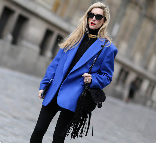 打开衣柜发现只有黑白灰,其实你真的该添一件蓝色单品了,恰好你有蓝色单品的话那么用它来搭配黑色一定没错,钴蓝色足够吸引眼球但是过于耀眼所以你得选择高端的黑色来盖住它的风头,时髦出门就是这么简单。