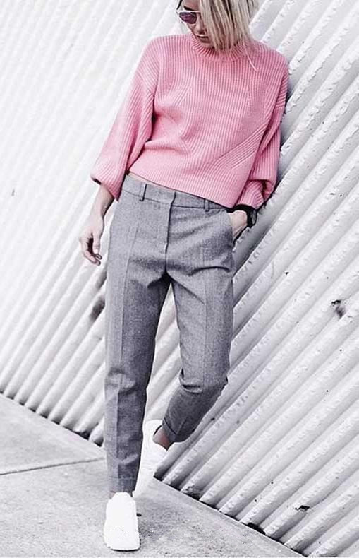 担心粉色穿不好其实只要搭配灰色你就会发现穿粉色也很简单。