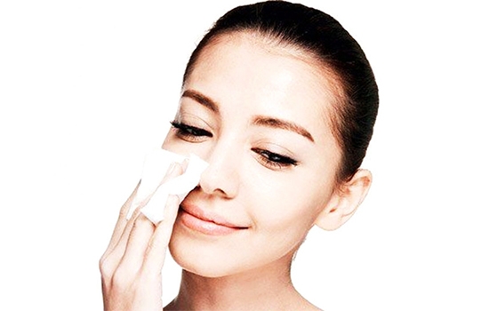 在脸部去完角质后,用化妆棉轻轻擦拭面颊和T区,带走没有冲洗干净的洁面品残留,擦拭脸部力度以肌肤感到柔软舒适为主。之后使用具有瘦脸功效的化妆水与乳液保护肌肤。