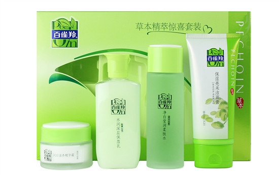 百雀羚草本精萃系列有改善肤色暗黄以及祛痘抑痘的功效。这个系列萃取自芦荟、海藻、蚕丝、人参花蕾、茶树油、金缕梅等草本成分,可以提亮肤色,平衡皮肤油脂,改善痘痘肌。