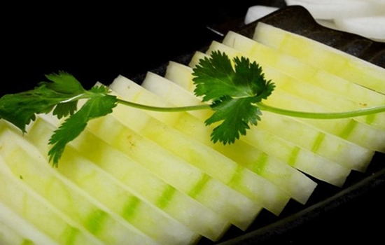 冬瓜中含有丰富的蛋白质、糖类、胡萝卜素等,这些成分能够有效的滋阴去燥、清热解毒、消脂利尿,能够有效解决皮肤干燥,皮肤滋润了,嘴唇也就不再干燥了。冬瓜里的葫芦巴碱主要存在于冬瓜瓤中,它能帮助人体新陈代谢,抑制糖类转化为脂肪也是冬瓜的减肥降脂功能之一。冬瓜核中含有油酸,具有抑制体内黑色素沉积的活性,是良好的润肤美容成分。注意秋冬季节不宜常吃多吃,否则容易积寒,对脾胃不利。