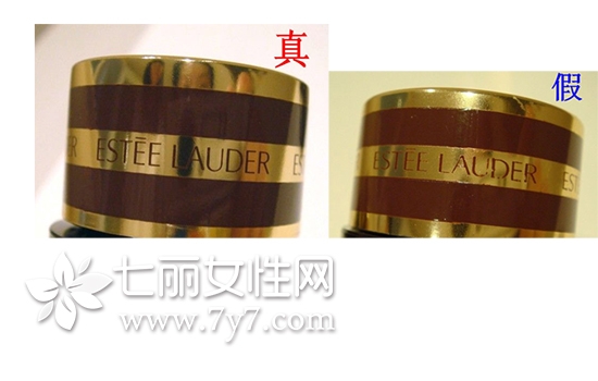 将雅诗兰黛小棕瓶的瓶盖放到光线较好的环境下,妹子们可以清晰看到瓶盖上ESTEE LAUDER以及瓶盖上的金色套印是非常整齐以及光洁的哦;假的雅诗兰黛小棕瓶眼霜自体边缘有缺失,走线边缘不整齐。