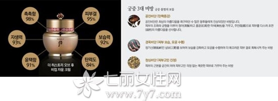 使用成分包含冬虫夏草、鹿茸等高档产品,并蕴含whoo宫廷三大配方:拱辰秘丹(清除皱纹 增强弹力)、琼玉秘丹(收缩毛孔 保湿作用)、清心秘丹(镇定痘痘肌肤),大幅度提高肌肤的自生、保湿、弹力等能力。
