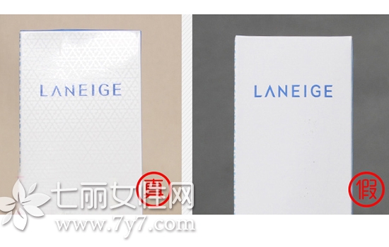 在看一个东西是否是正品的时候,我们首先看到的就是包装。兰芝洗面奶纸盒包装其实也能轻易分辨出真假,首先从正面看真的兰芝洗面奶纸盒包装,将纸盒包装放在光线较强的环境中,我们可以看到真的兰芝洗面奶纸盒包装上有着一层隐隐约约的白色底纹,底纹的图案和纸盒侧面蓝色底纹图案是一致的;而假的兰芝洗面奶包装盒正面则是一层白色的背景,没有任何的白色底纹。