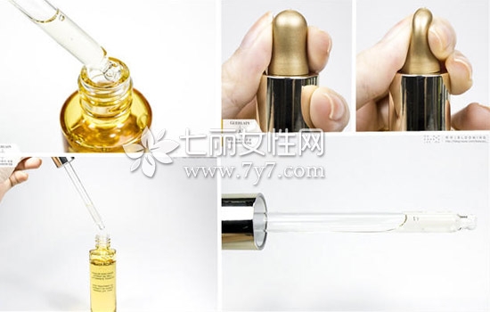 金色透明细长型玻璃瓶身,滴管式金色瓶口设计,使用方便。