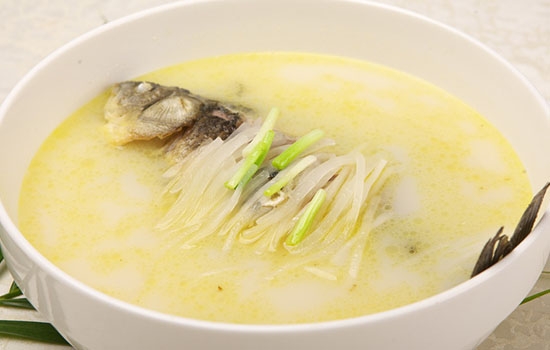 做法:鲫鱼洗净。白萝卜洗净、去皮、切块。生姜洗净、切片。葱洗净,切成葱花。先把鲫鱼稍微煎一下,去腥。然后把鲫鱼放煲里,加入萝卜、生姜,一同煲成汤后,加入葱花、花雕酒和食盐,继续煲2到3分钟即可。