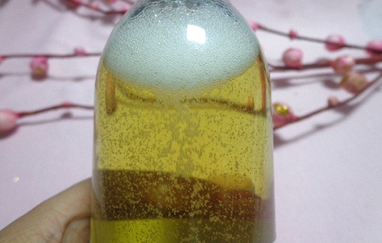 狠摇爽肤水之后,如果发现爽肤水泡泡很多但是泡泡大就意味着爽肤水内含有水杨酸。虽然含有水杨酸的爽肤水二次清洁效果很好,却不适合敏感肌肤使用,以免发生过敏的现象。