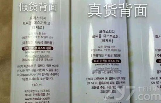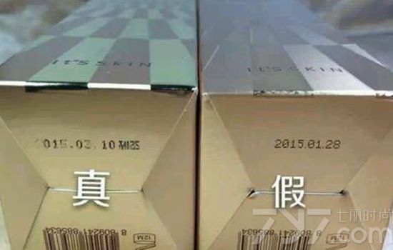 真的伊思水乳包装盒底部生产日期所用的原料是环保原料,这种原料并不牢靠,长时间的摩擦会使得条码被摩擦掉或者条码颜色变淡;而假的伊思蜗牛水乳则是用的工业墨水,一般不会掉色或者脱落。此外,妹纸们还要注意真的伊思蜗牛水乳在生产日期后面有两个韩文字母,这是假货所没有的。