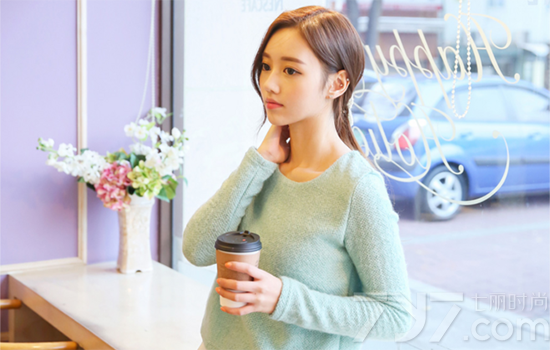 何穗最新街拍,灰色毛衣+墨绿色光泽感半裙,文艺慵懒,少女感十足。马海毛毛衣来自H&M,手提包和粉色毛拖鞋均来自Gucci,半裙来自Tibi 2016