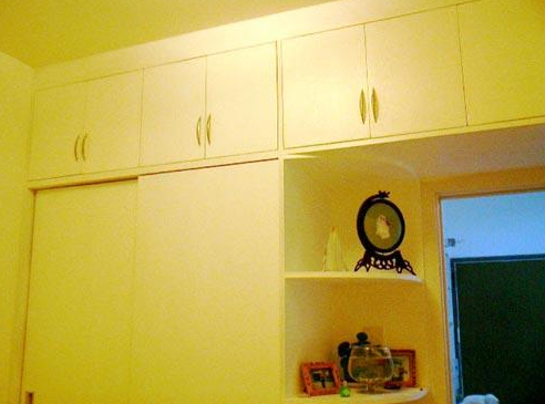 卧室的衣柜孤形架可以放置一些装饰品。这种衣柜的设计很适合小户型,这样的室内装饰设计,很有温馨感。