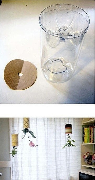 第四步:将瓶尾放在瓶身底部,这个倒挂盆栽就完工了!