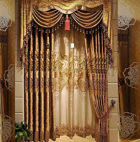 在欧式风格的装修中,选择一款时尚大气的欧式窗帘非常的有必要,而金色系的欧式窗帘不仅能给家居营造出奢华的美感,给人一种奢华的宫廷盛宴,还能体现出家居主人的高贵品质。打造古典奢华家居从欧式窗帘开始。