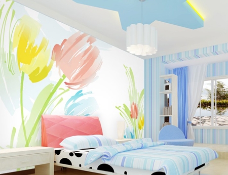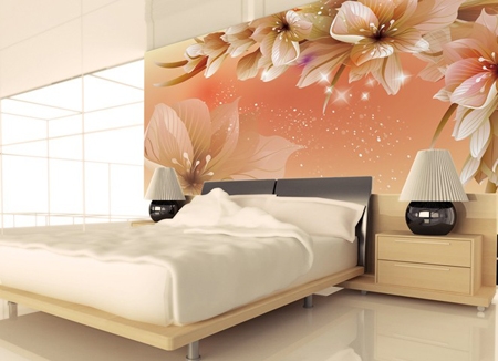 如若你的卧室整体色调是暖色调的,那么壁纸的也可以选择暖色调的,像大朵大朵的鲜艳花朵就很不错,能让你的卧室有一种浪漫气息,看起来也显得很和谐,不会显得突兀!