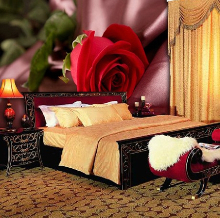 如果卧室是黑白暗色调的,那可以尝试一下热情的火红色,它能让你原来暗淡的房间大放光彩,一进门,就会不由自主的被其吸引!优雅大气上档次!