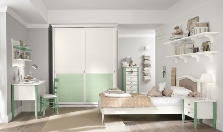 儿童房卧室设计图Look1:绿色与白色为主调的设计适合男、女孩