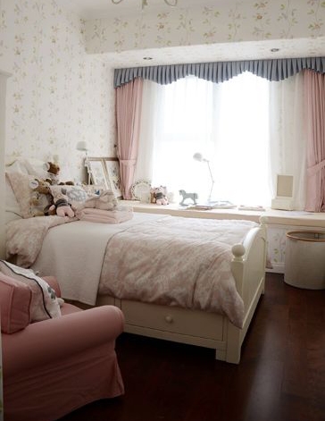 儿童房应该是最梦幻的地方,如果是女生的话,可以营造出公主风,粉嫩的粉搭配点白,毛绒玩具,充满童真的氛围。为了空间被更多的利用,可以搭配些迷你的衣柜、迷你沙发。