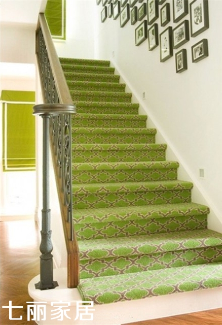 家用楼梯地毯Look3:绿色花纹地毯设计春意盎然