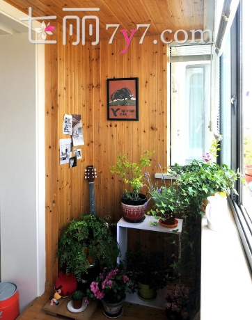 阳台的一角也可以打造出浪漫的温馨感,不需要太大的空间,只需要一角而已,照片墙与植物相结合,简单的设计,就可以让阳台生机勃勃。