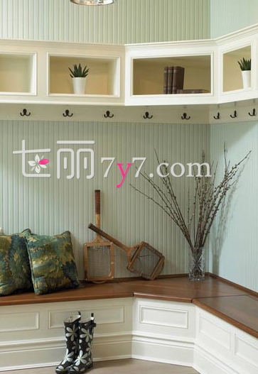 转角处的玄关设计非常重要,可以让整个空间都充满温馨感,可以在转角的上方安装一个转角搁板,摆点小饰品,就可以让这个空间都充满小清新的感觉。