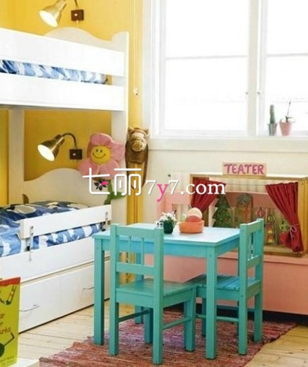 可爱儿童装修效果图LOOK6:上下铺床+木质桌椅