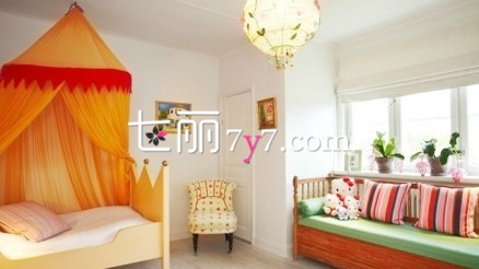 可爱儿童装修效果图LOOK7:橙色公主床+长条沙发