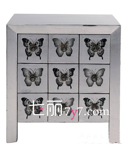 极具风格的蝴蝶图案收纳柜,抽屉是大大小小、方方正正的形状,让你可以根据不同物品的大小而选择,蝴蝶图案在这个春季显得也格外的有生机。
