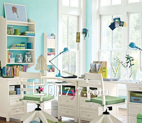 这样的书房设计,让无疑不是夏日里的一个巨大惊喜,清爽别致的色调,让你置身于阳光中,在学习与休闲的时候宛若沐浴在春的阳光下,心情也会变得格外的舒畅。
