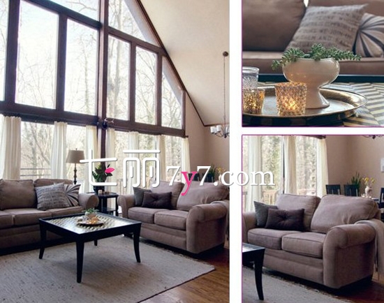 低调沉稳的灰色布艺沙发,在融合了原木的内涵,让整体家装变得更加具有内涵和复古,做工极为精细的沙发彰显出品质,家居中还运用了一些小清新的装饰品,打破沙发深色系的深沉,让家居装饰变得更为明亮和淡雅。