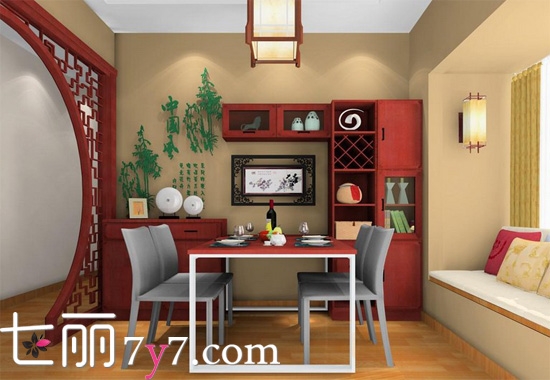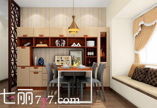 中国风格古色古香崇尚素雅自然,温馨卡其色墙纸完美的融合了整个主题。餐桌、壁柜采用了中国红木的色调和纹理,融入时尚元素与欧式现代简约,呈现出一种新东方情调,家中长辈必定会很喜欢。