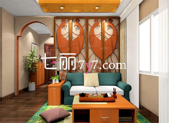点评:芭提雅风格有者浓厚东南亚风味,古典质朴。泰黄金柚木色的电视柜、壁柜设计,搭配上简洁干净、时尚清新的绿白拼接的沙发设计,别有一番滋味,非但不会显得单调,反而使气氛相当活跃。民族风浓厚的摆设让客厅空间的氛围更加和谐舒适。稳重而不失时尚,理性不失格调。
