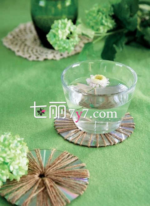 取长度适用的麻绳有序的缠绕在废旧的光盘上,根据自己的喜好控制麻绳的松紧空隙。拿来做隔热垫是非常帮的主意,还是很棒的装饰品哦。