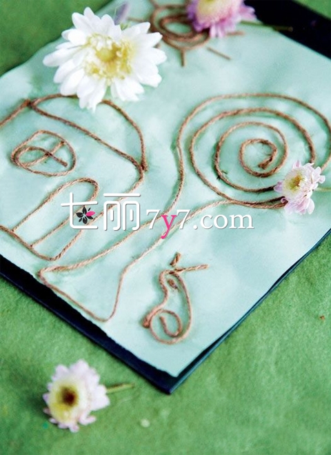 用普通的麻绳作画和孩子来一场亲子互动。在硬纸板上勾勒出自己喜欢的图案,将较细的麻绳粘贴在上面,一副清新唯美的画就新鲜出炉啦。