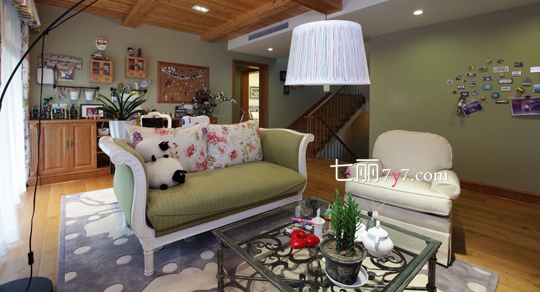 用质朴的光线来打造出南美风的感觉,生动有趣的垂钓式的台灯,用淡淡的绿色柔化了空间家居摆设,营造出温馨的家居的风格,自然又淳朴。