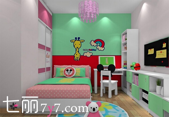 粉色搭配绿色凸显甜美、清新气息,衣柜的凹位镶入式设计的规划,节省了不少空间,让房间看起更宽敞明亮。孩子住在这样的环境中,学习也成为一件快乐的事!