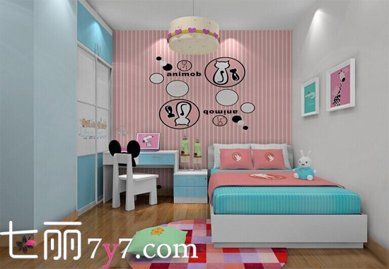 粉红搭配粉蓝凸显女孩的甜美气息。粉红竖条纹背景墙与粉蓝色的衣柜搭配,打造温柔细腻的温顺性格,恬静温馨的蛋糕吊灯,让人甜甜蜜蜜的。这里就能找到小女孩的粉色记忆!