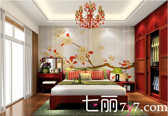 空间点评:中国风格装修设计,融入古典高雅的风格。利用凹位空间做衣柜,让房间宽敞明亮、彰显大气之风。绿色的床品加上淡雅的墙纸彰显空间的清新感。